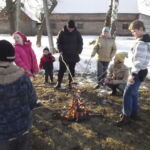 Na czele kuligu nie było żywych koni lecz „konie mechaniczne”, jednak w żaden sposób nie wpłynęło to na znakomitą atmosferę towarzyszącą przejażdżce . Po godzinnej jeździe nasza kolumna dotarła z powrotem pod świetlicę wiejską , gdzie czekało na nas już ognisko , które rozpaliła pani Elżbieta Urbanek . Zadbaliśmy o to by każdy mógł się ogrzać przy ognisku i upiec kiełbaskę .W świetlicy na wszystkich czekała gorąca herbata i miejsce przy stole , gdzie można było spokojnie się posilić .