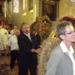 Podczas uroczystej dziękczynnej mszy świętej Proboszcz Ksiądz  , Sławomir Olejniczak  dziękował Bogu za wszystkie dary ziemi . Proboszcz naszej parafii podkreślił w swoim kazaniu , że powinniśmy podziękować Panu Bogu za  pogodę i urodzaje za to , że omijały nas nieszczęścia .  Praca rolnika nie jest łatwa , a plony jakie będą nigdy nie wiadomo . Po mszy korowód  z wieńcami udał się do wyznaczonego miejsca za szkołą w Piłce się Sw. Miejsce uroczystości dożynkowych tworzyło piękną harmonię  z otaczającymi nas drzewami .