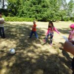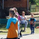 Dzieci uczestniczyły również w konkursie strzelania rzutów karnych. Wielkim zaskoczeniem dla wszystkich okazało się, że dziewczynki z naszej miejscowości równie dobrze radzą sobie z grą w piłkę nożną jak chłopcy. Na zakończenie rozegrano mecz w tzw. ,,dwa ognie’’, gdzie zaobserwować było można zażartą rywalizację między drużynami. Po trudach związanych z wysiłkiem fizycznym przyszła pora na radość dla ciała. Wszystkie dzieci otrzymały lody oraz drobne upominki w postaci słodkości.