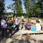 O godzinie 15.00 dzieci zostały przewiezione przez Pana Stefana Szczepskiego ciuchcią z doczepionymi wagonem. W trakcie podróży można było podziwiać uroki naszej pięknej Puszczy Noteckiej. Dzieci z radością na twarzy machały do każdej napotkanej po drodze osoby. Po powrocie rozegrano mecz siatkówki. Wszystkie dzieci grały w wielkim zaangażowaniem, nie przejmując się niepowodzeniami. Należy nadmienić, iż siatka oraz piłki do siatkówki i kosza zostały wypożyczone w tym szczególnym dniu od Stowarzyszenia ,, Nasza wieś naszym domem’’.