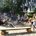 Momentem kulminacyjnym festynu dla dzieci było zorganizowanie ogniska. Dzieci wraz z rodzicami mogły piec kiełbaski. Po zakończeniu ogniska wszyscy przez jeszcze dłuższy czas nie opuszczali boiska chcąc obserwować swe bawiące się z uśmiechami na twarzach pociechy. Myślę, że dzieci jeszcze przez długi czas będą z radością wspominać ten specjalny dla siebie dzień.