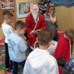 Tego samego dnia po jasełkach do przedszkola przybył św. Mikołaj . Od rana dzieci nie mogły się doczekać na tego gościa. Gdy tylko pojawił się w drzwiach na wszystkich twarzach ukazał się uśmiech . Mikołaj przyniósł każdemu dziecku prezent , który miał w wielkim worku . Mikołaj opowiedział dzieciom skąd przybył do Kamiennika , oraz o tym dlaczego przynosi prezenty . Później dzieci zaśpiewały piosenki, oraz deklamowały dla Mikołaja wierszyki . Na koniec spotkania zrobiliśmy sobie pamiątkowe zdjęcie z Mikołajem. Następne odwiedziny znów za rok.