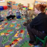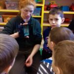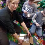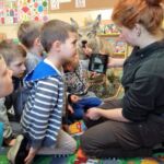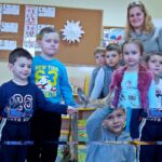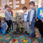 Dzieci dowiedziały się, iż nie ma takiej konieczności by dokarmiać zwierzęta przez całą zimę. Należy to robić tylko w czasie dużych mrozów i kiedy ziemia pokryta jest śniegiem bo to właśnie wtedy jest najtrudniejszy czas dla zwierząt. Pani Karolina pokazała dzieciakom zdjęcia paśnika, lizawki, drzewa zgryzowego oraz kuli zimowej dla ptaków.