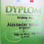 – III miejsce w ogólnopolskich zawodach lekkoatletycznych w biegu na 600 m.