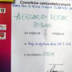 – drugie miejsce na 1000 m w kategorii dzieci rocznika 2004 i młodsze biegi przełajowe . Zawody odbyły się w Poznaniu na trasach, Hipodromie -Wola , były to mistrzostwa Wielkopolski .