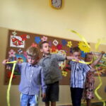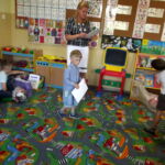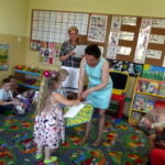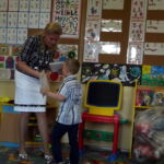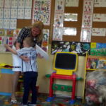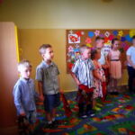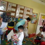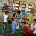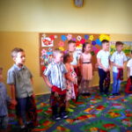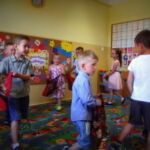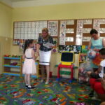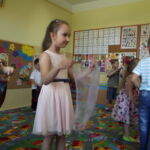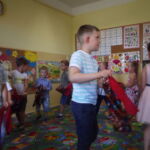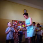Starszaki, które po wakacjach idą do szkoły żegnały przedszkole, a młodsze dzieci pożegnały swych starszych kolegów i koleżanki .