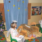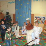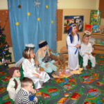Dzieci zaprosiły swoich rodziców , a także pana sołtysa Engelberta Urbanka . Występy odbyły się w pięknie udekorowanej sali. Był żłobek, Matka Boska i św. Józef. Towarzyszyli im pastuszkowie i Aniołki . Przedszkolaki przybliżyły rodzicom i zaproszonemu gościowi wydarzenia związane z narodzeniem Pana Jezusa. Po zakończeniu Jasełek wszyscy wspólnie zaśpiewali kolendę . Następnie Mikołaj obdarował dzieci prezentami . Na koniec wszyscy podzielili  się opłatkiem ,złożyli sobie życzenia świąteczne i usiedli do wspólnego posiłku .