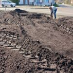 Pan Marcin Krokocki przywiózł 40 ton czarnej urodzajnej ziemi , która została rozplantowana – przygotowana pod nasadzenia .
