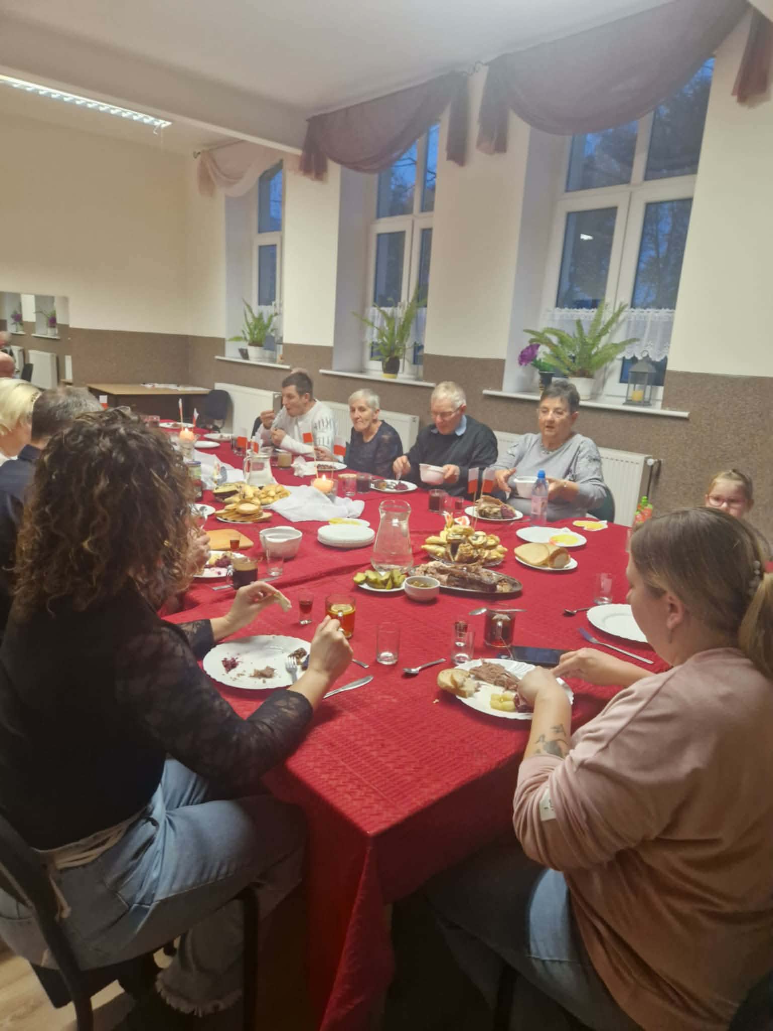 Tegoroczna pieczona potrawa przygotowana została z ogromną dbałością przez nasze panie . Nie zabrakło także placków ,herbaty ,kawy , zimnych napojów oraz słodkości dla dzieci .Obecni mile i wesoło przy stole spędzili czas w niedzielne popołudnie . Świętomarcińska tradycja pieczenia gęsiny powoli odżywa również w Kamienniku .