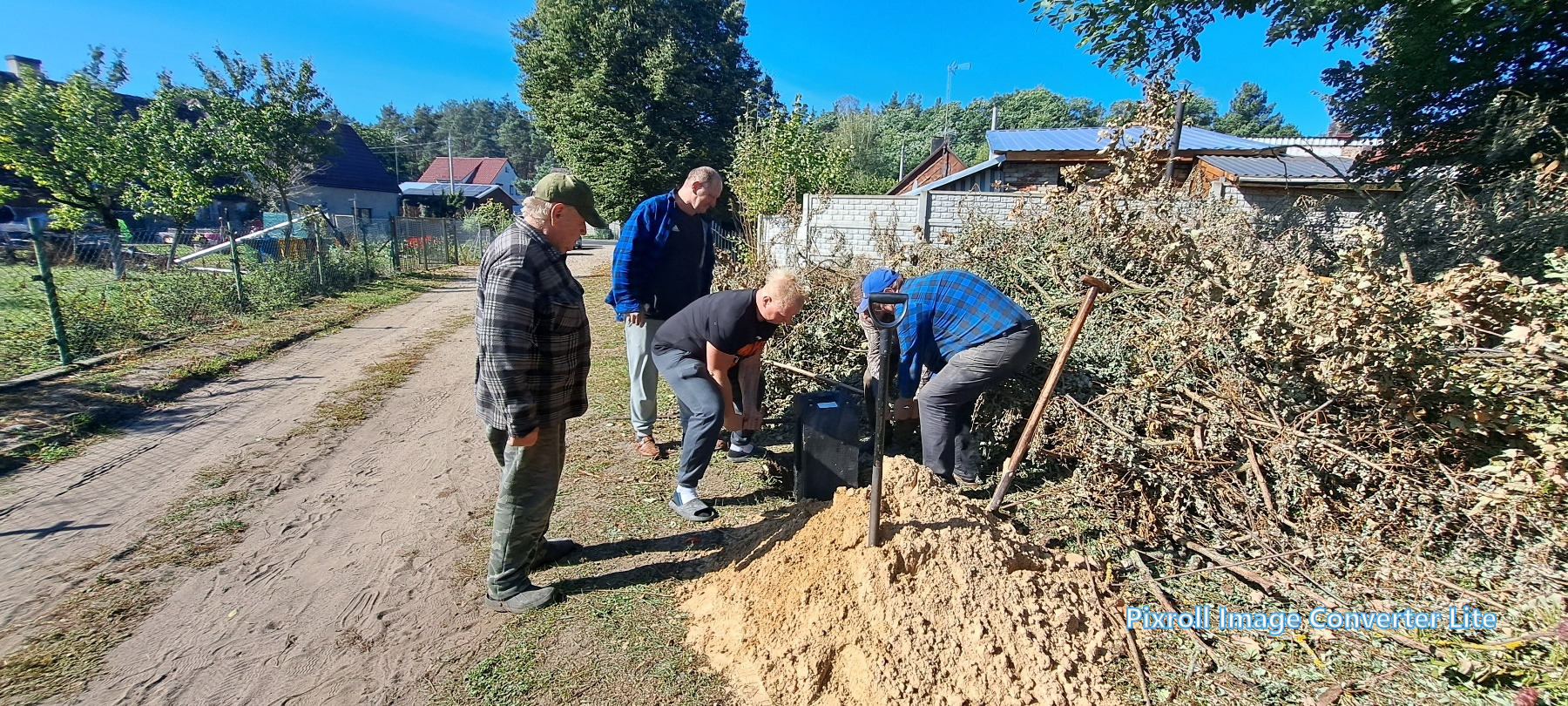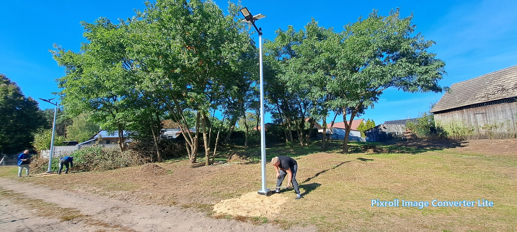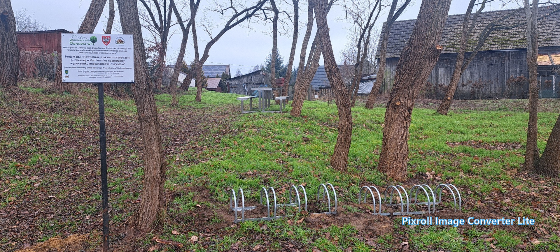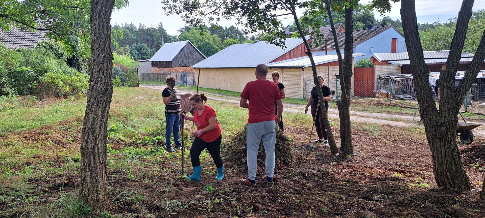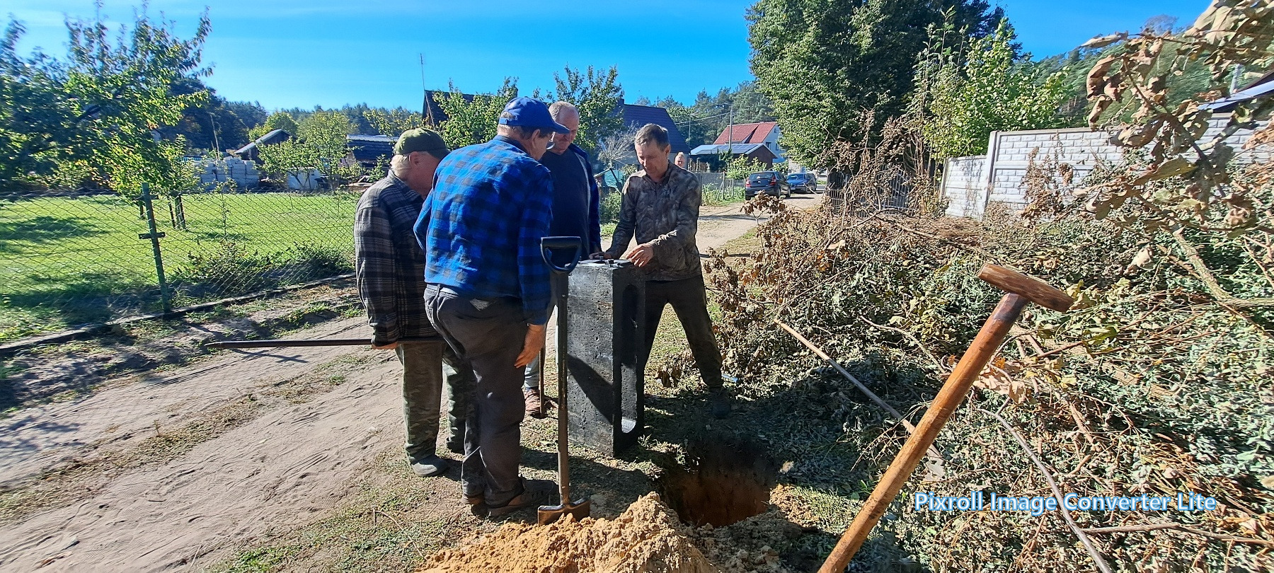 Już 13 września mieszkańcy wsi tłumnie ruszyli do pracy – wspólnie uporządkowali zaniedbany teren, wykarczowali krzewy, usunęli śmieci i przygotowali teren pod dalsze prace. Kolejne spotkanie odbyło się 27 września, kiedy zamontowano lampy solarne. Następnie wykonano ostatni etap – wykoszenie trawy, ustawienie koszy na śmieci, stojaka na rowery oraz montaż stołu edukacyjnego z ławkami. Wszystkie prace wykonano społecznie – w ramach wolontariatu mieszkańców.
