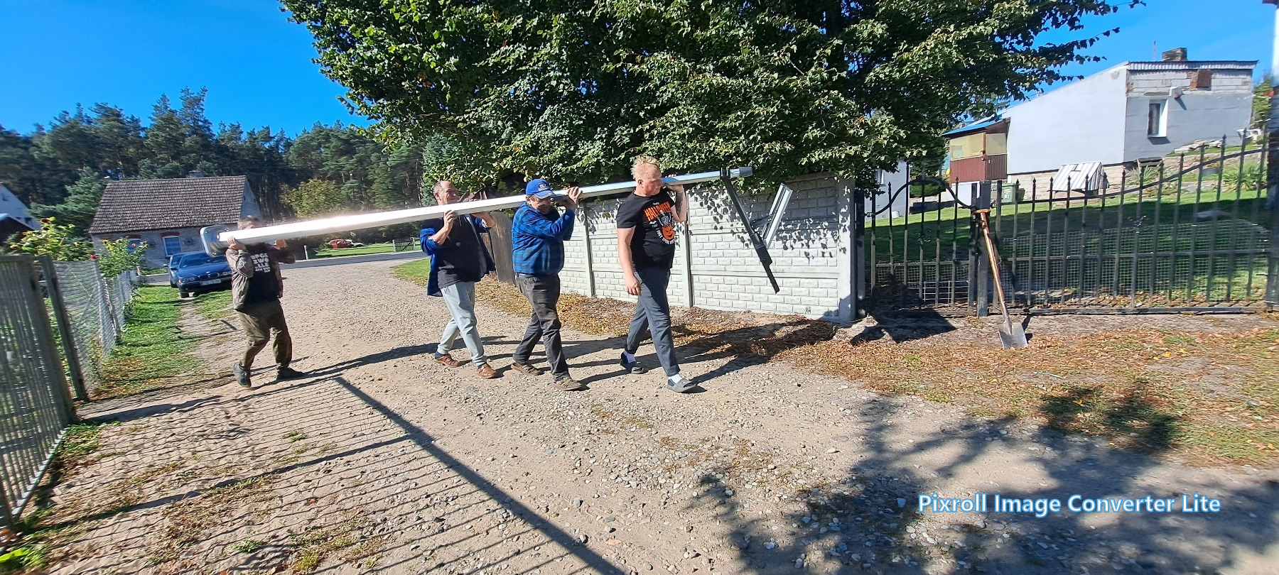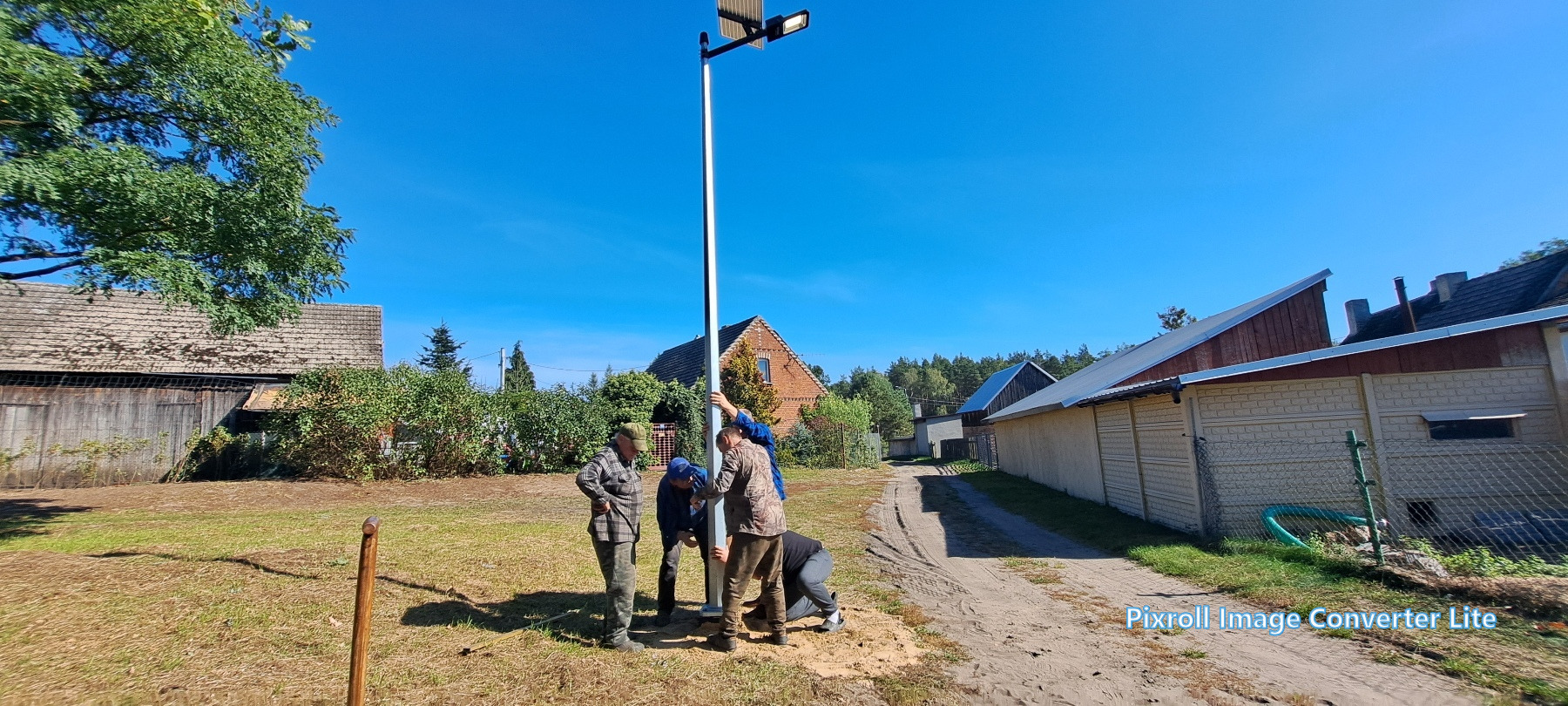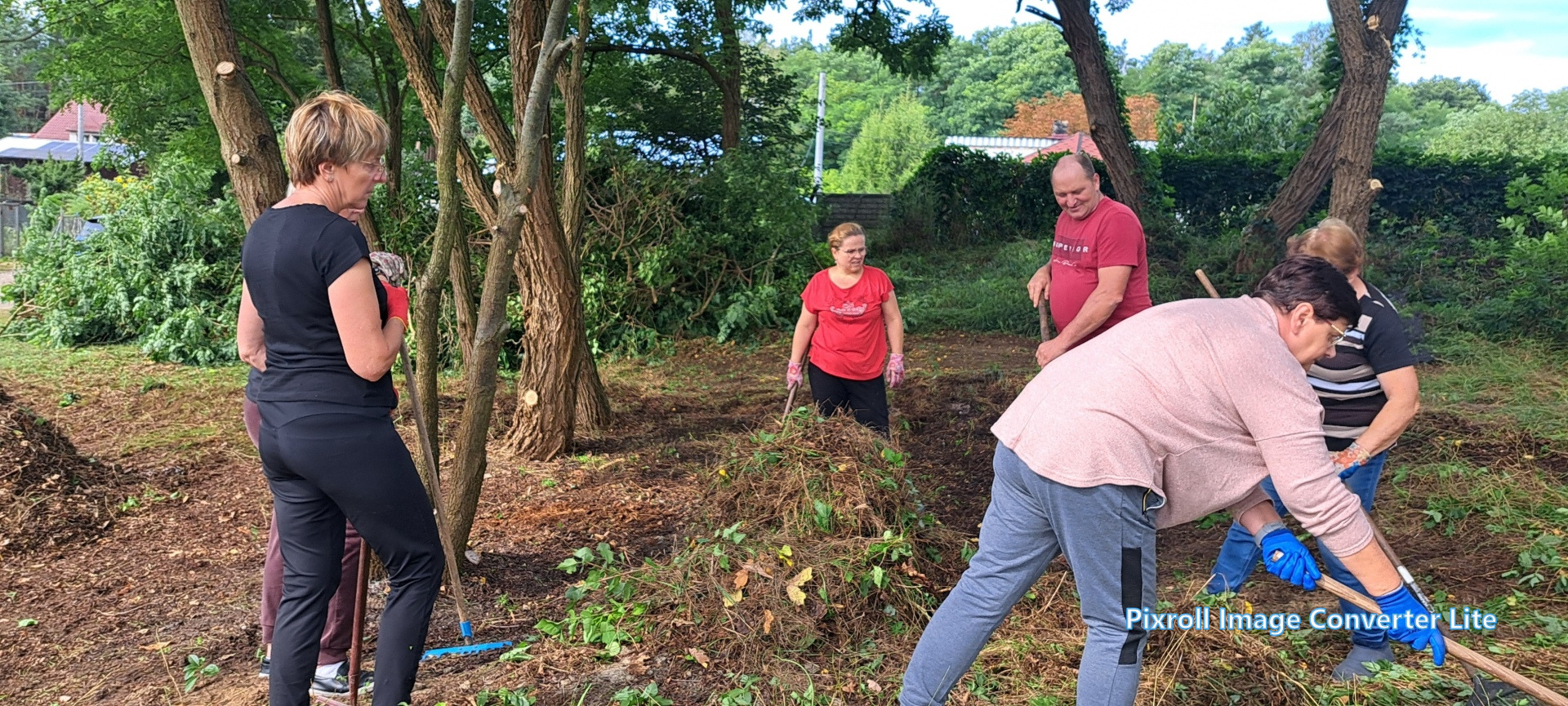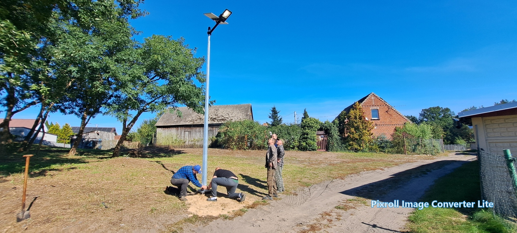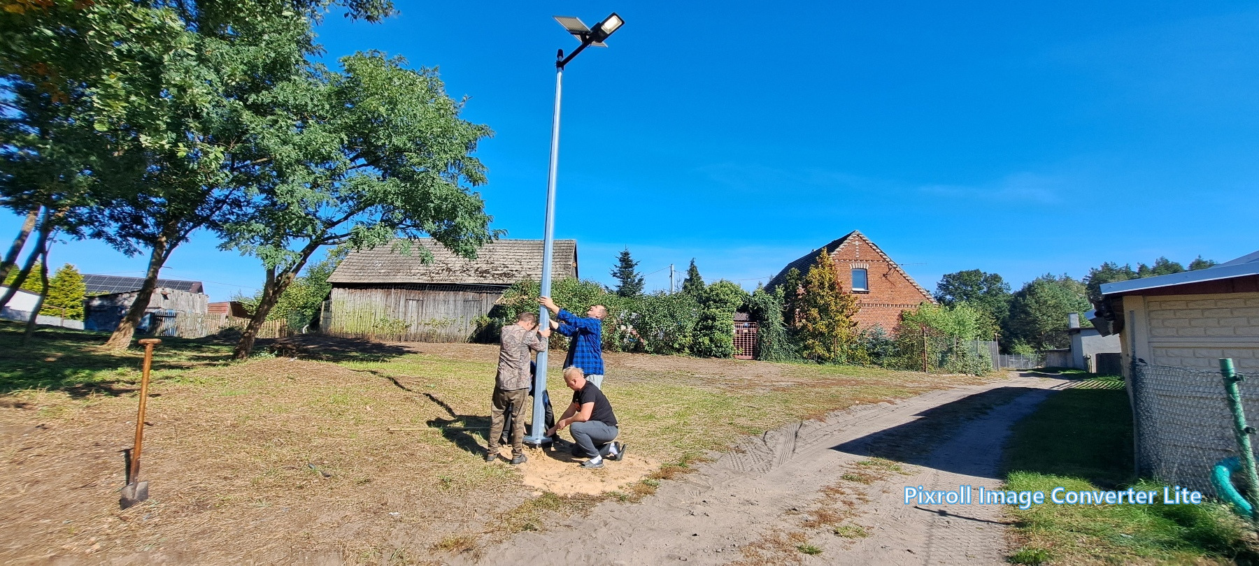 Już 13 września mieszkańcy wsi tłumnie ruszyli do pracy – wspólnie uporządkowali zaniedbany teren, wykarczowali krzewy, usunęli śmieci i przygotowali teren pod dalsze prace. Kolejne spotkanie odbyło się 27 września, kiedy zamontowano lampy solarne. Następnie wykonano ostatni etap – wykoszenie trawy, ustawienie koszy na śmieci, stojaka na rowery oraz montaż stołu edukacyjnego z ławkami. Wszystkie prace wykonano społecznie – w ramach wolontariatu mieszkańców.