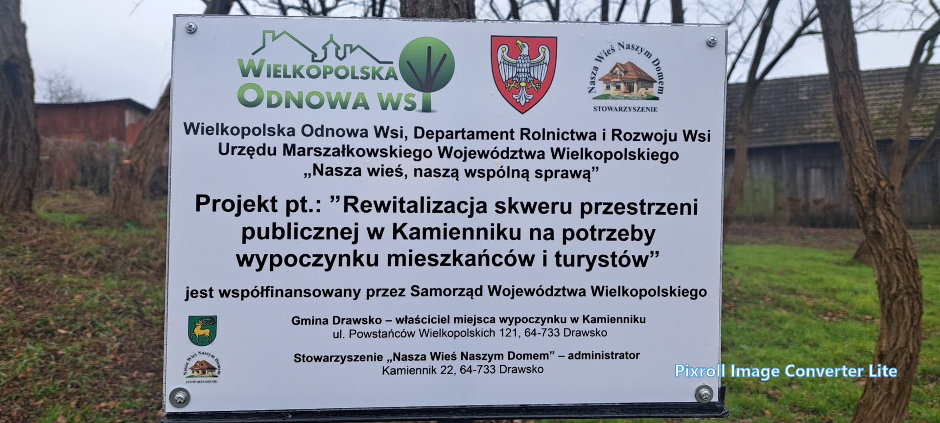 Projekt pod nazwą „Rewitalizacja skweru przestrzeni publicznej w Kamienniku na potrzeby wypoczynku mieszkańców i turystów” zakładał uporządkowanie i zagospodarowanie terenu, montaż dwóch lamp solarnych, ustawienie stołu edukacyjnego z siedziskami, stojaka na rowery oraz czterech koszy na śmieci. Wartość zadania wyniosła 11 500 zł, z czego 500 zł stanowił wkład własny stowarzyszenia, pozyskany z Gminy Drawsko w ramach zadania publicznego „Działalność wspomagająca rozwój wspólnot i społeczności lokalnych”.
