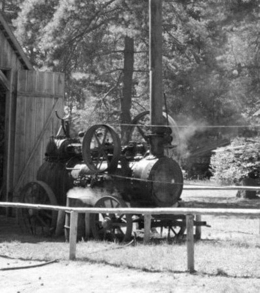 Przed powstaniem sektora usług w tej lokalizacji funkcjonował trak tartaczny, którego stały napęd stanowiła lokomobila . Urządzenie to stanowiło zintegrowany zespół kotła i silnika parowego, napędzający trak oraz pozostałe maszyny poprzez system kół pasowych.Na terenie zakładu lokomobila napędzała prądnicę, stanowiącą źródło zasilania dla maszyn pracujących w systemie prądu stałego. Maszyna ta stanowiła nieocenioną pomoc na terenach niezelektryfikowanych. Jej kocioł był przystosowany do spalania drewna, węgla i torfu. Poniżej działu usług, w lokalizacji dawnego traka i lokomobili, powstał nowy budynek mieszczący kotłownię oraz zaplecze sanitarne (łaźnię) dla załogi. Teren usług od kotłowni oddzielała ścieżka, stanowiąca bezpośrednie połączenie zakładu z domem kierownika. Początkowo mieszkał tam Edmund Tymek z rodziną , a po zakończeniu przez niego pracy zawodowej, budynek zajął jego następca – pan Andrzej Dolny wraz z bliskimi.