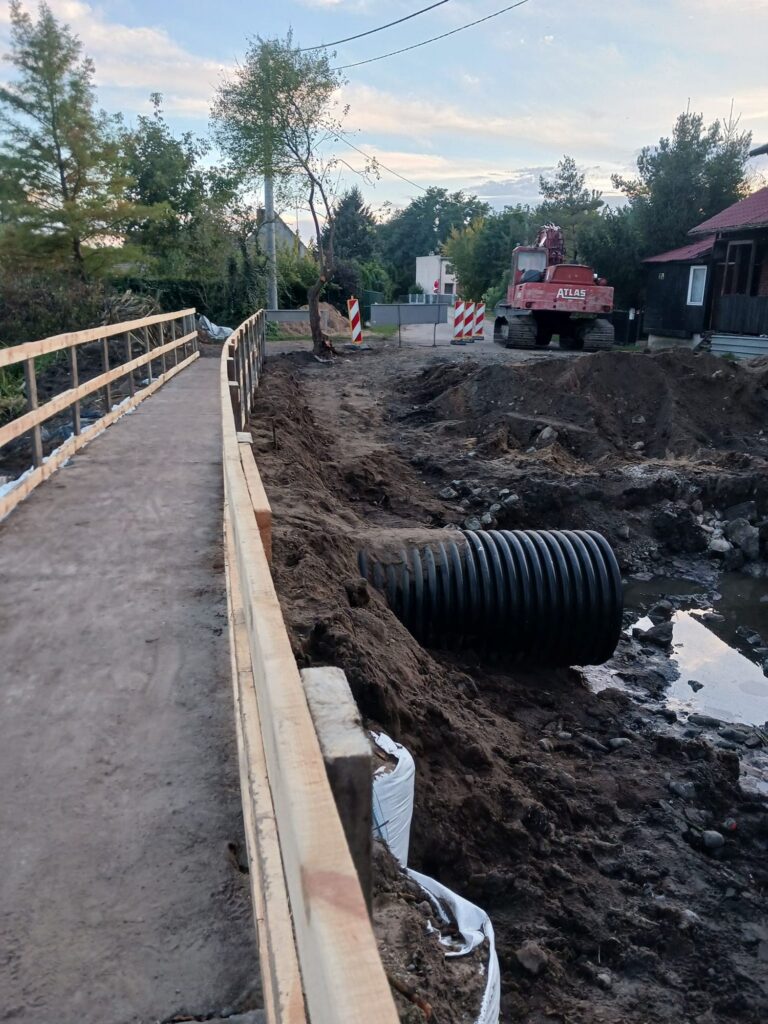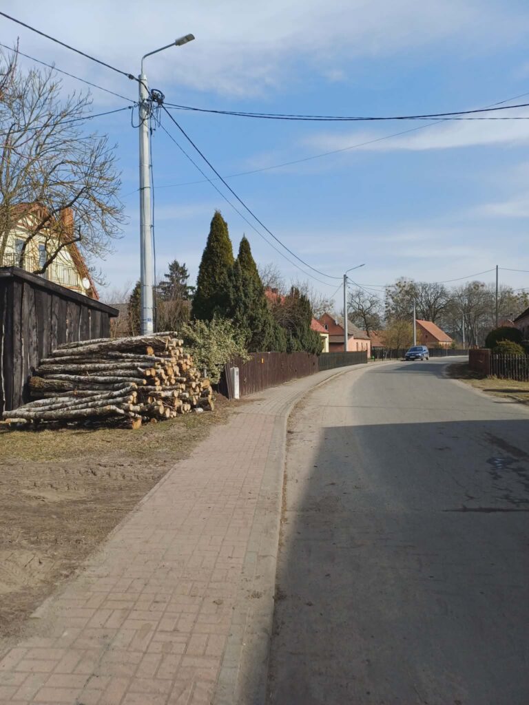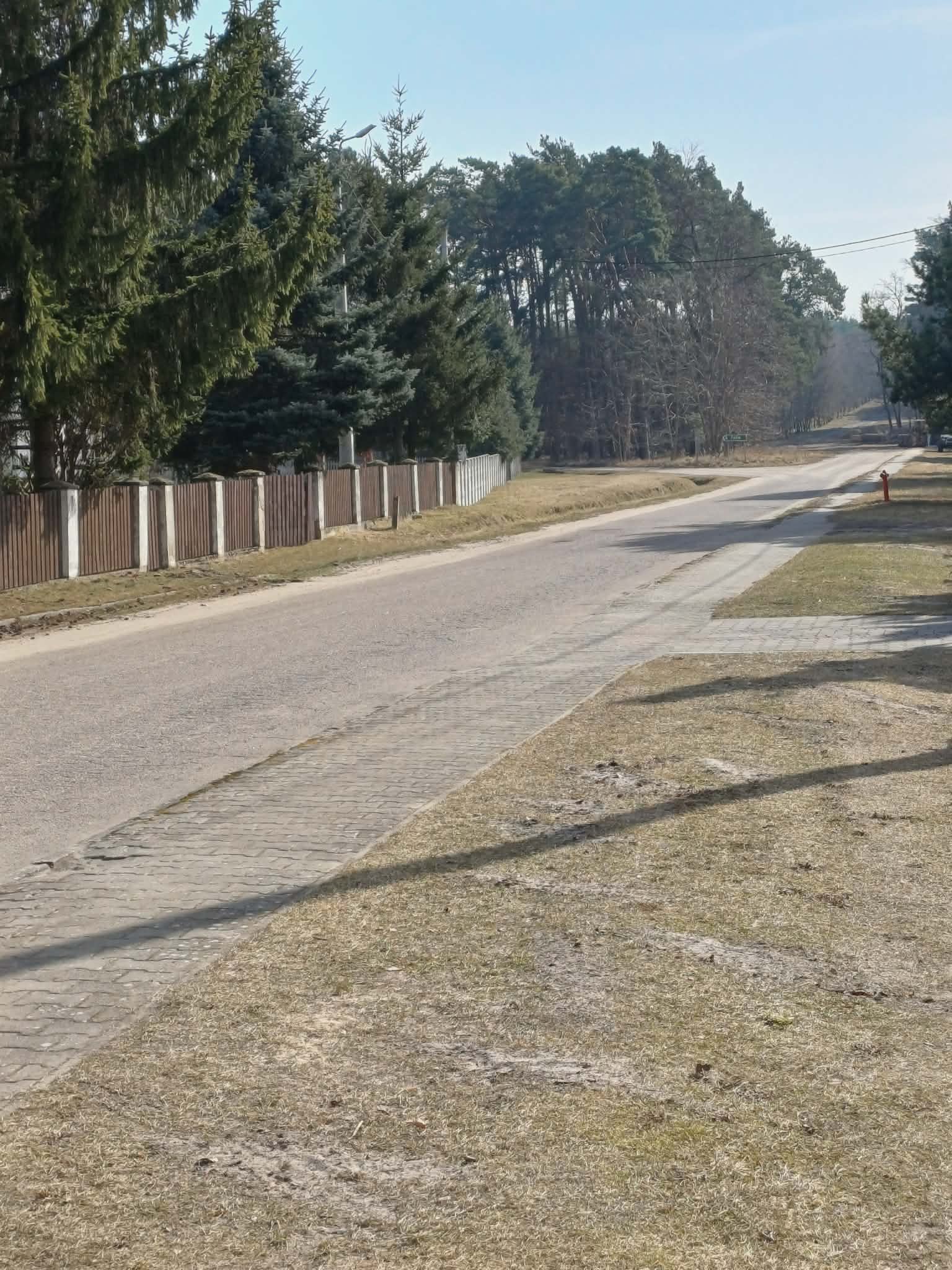 Po 2010 roku, dzięki pozyskaniu dotacji zewnętrznych oraz środkom z funduszy sołeckich, nastąpił dynamiczny rozwój sieci chodników. Inwestycje te były odpowiedzią na wieloletnie postulaty mieszkańców dotyczące poprawy bezpieczeństwa pieszych. Główny ciąg pieszy wybudowano wzdłuż drogi wojewódzkiej nr 133, natomiast pozostałe odcinki powstawały etapami zgodnie z uchwałami zebrań wiejskich. Infrastrukturę uzupełniły dwa parkingi – obiekt z wiatą dla aut i autobusów przy kaplicy oraz parking przy zalewie, oddany do użytku w ramach urządzania terenu rekreacyjnego.